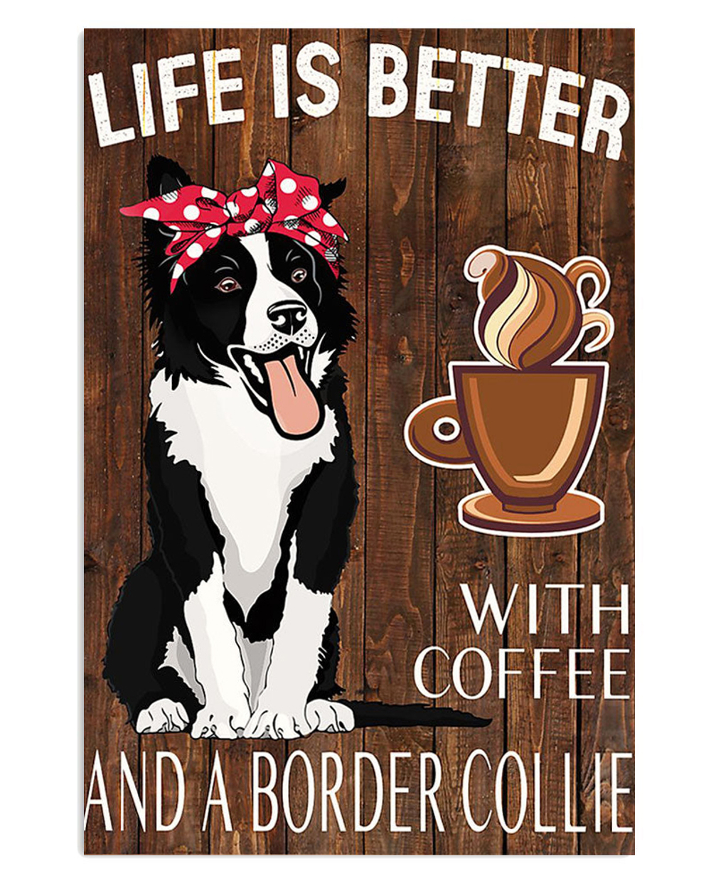 Border Collie Cute Dog Loves Coffee And Border Collie Poster, Animal Lovers Vintage Wall Art