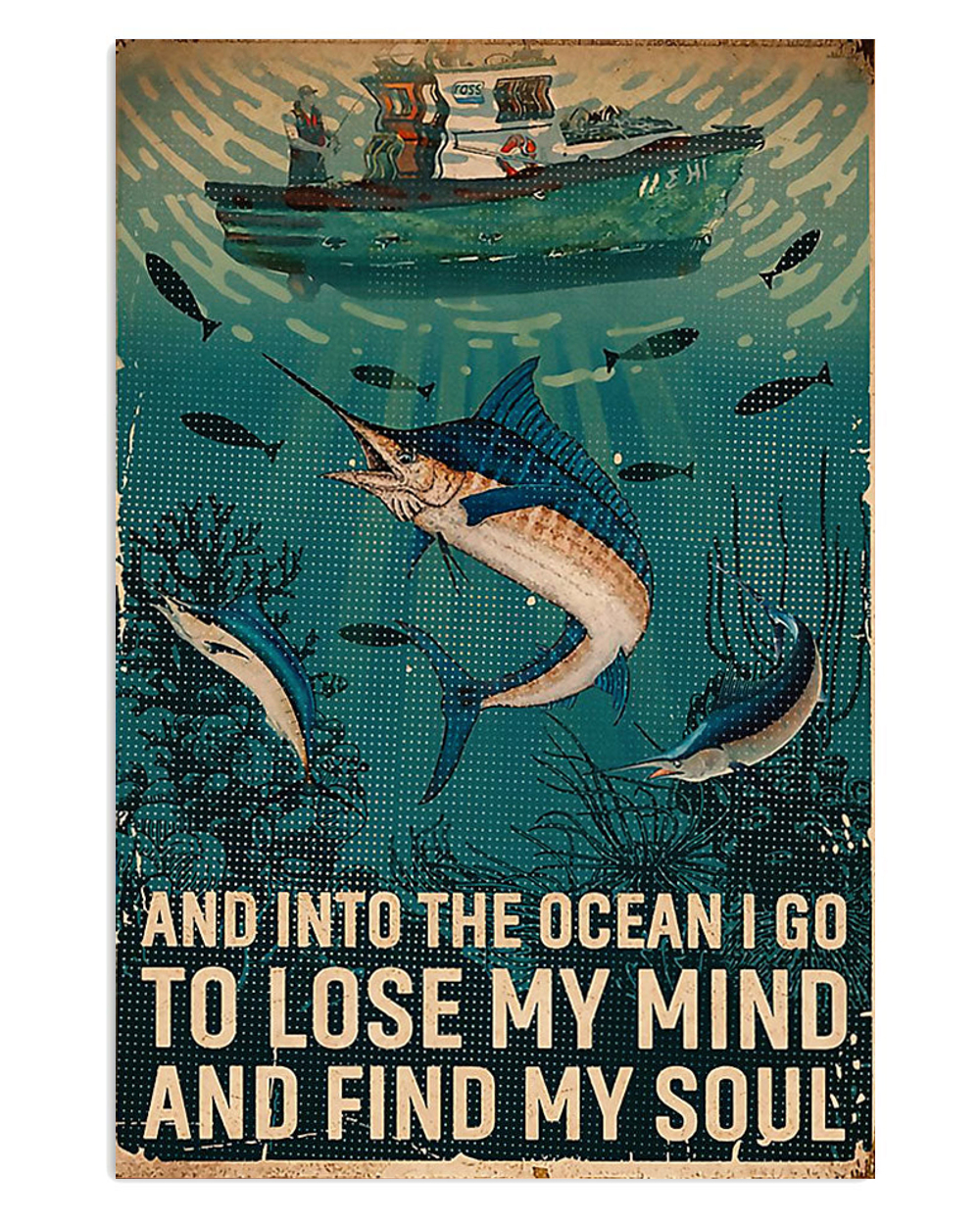Fishing Into The Ocean Vintage Poster, Fishing Lover Gift, Retro Fishing Hobby Poster