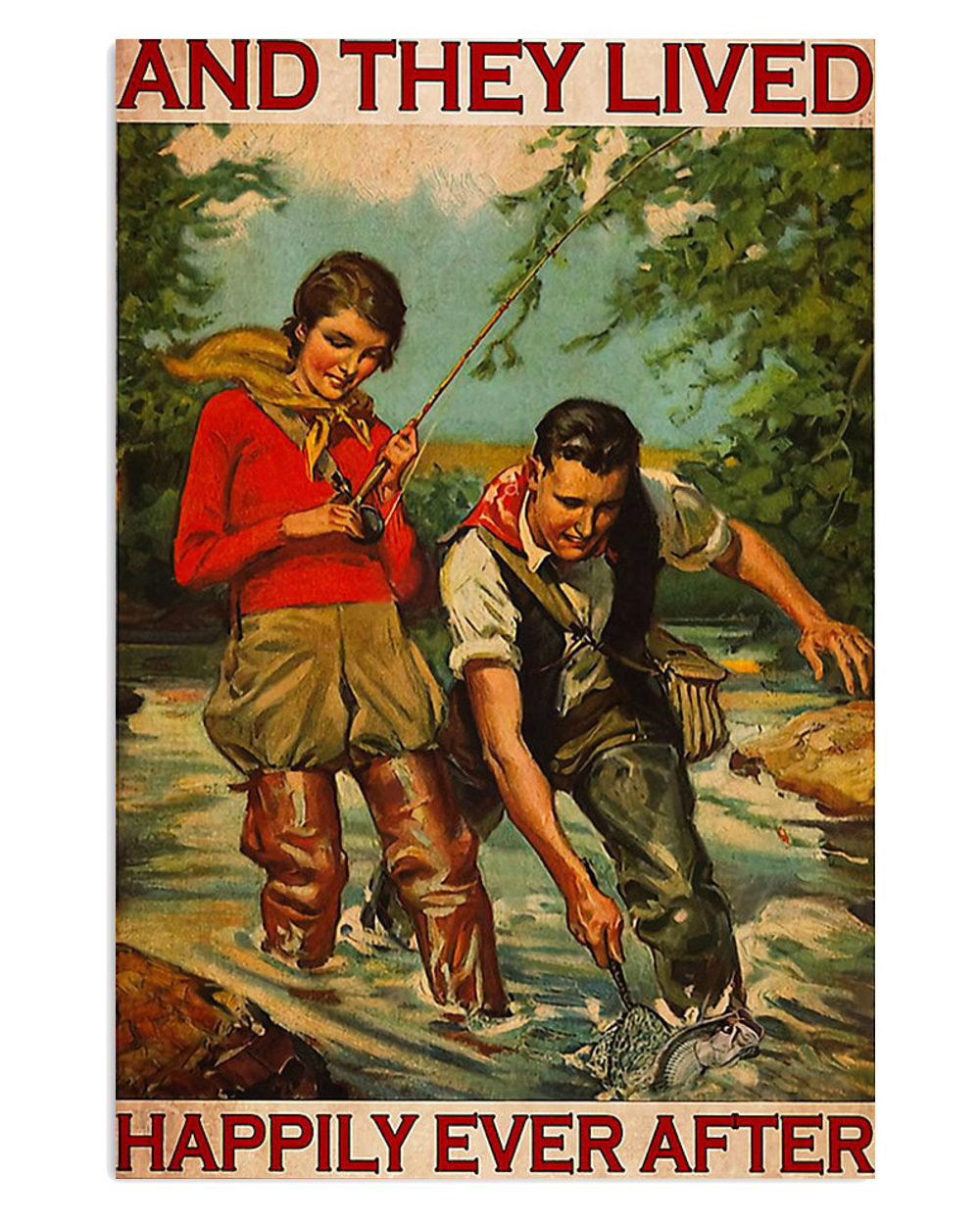 Fishing They Lived Happily Vintage Poster, Fishing Lover Gift, Retro Fishing Hobby Poster